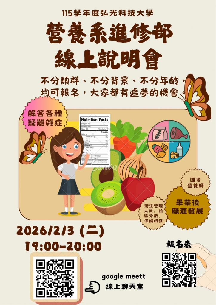 弘光科技大學營養系進修部線上說明會