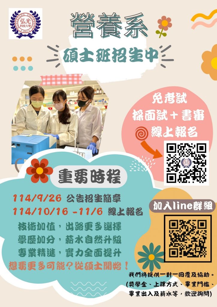 📚 歡迎加入我們的營養系碩士班大家庭 💕